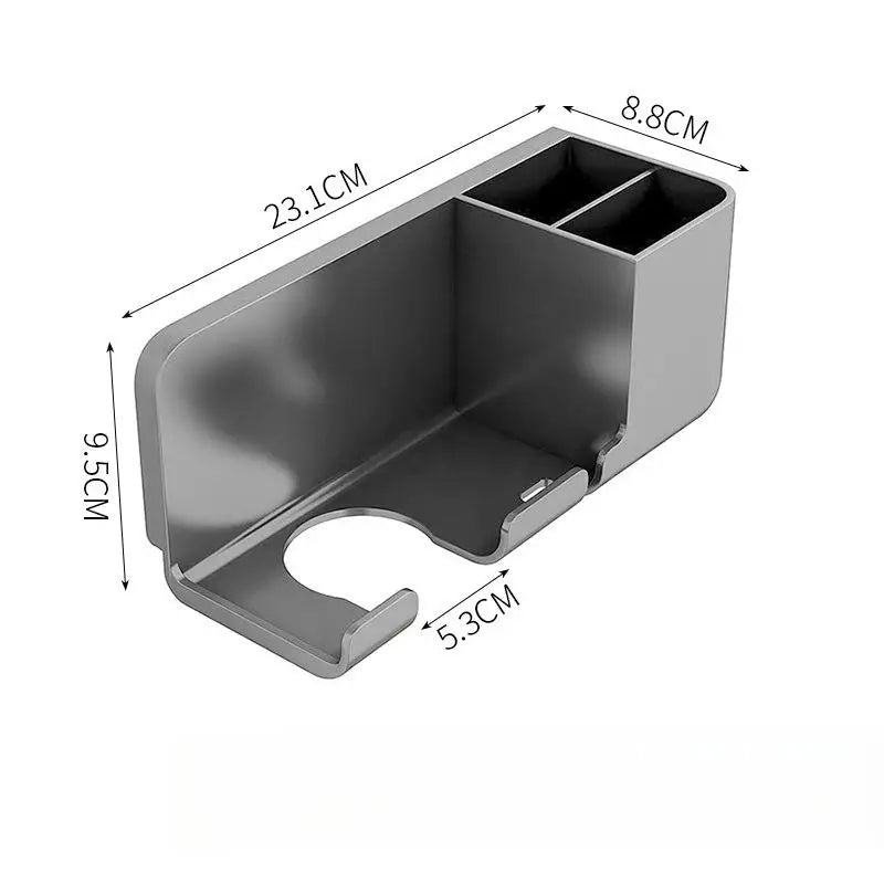 Keep your bathroom neat, organized, and clutter-free with our No-Drill Hair Dryer Holder with Side Caddy. Designed from durable ABS plastic, this space-saving organizer mounts securely to the wall without screws or drilling. Perfect for storing your hair dryer, combs, brushes, and other essentials—all in one convenient spot.