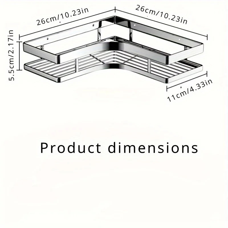 Maximize your bathroom space with our Stainless Steel Corner Shower Caddy. Built from high-grade, rust-proof stainless steel, this sleek 2-tier organizer installs easily with adhesive, no-drill mounting. Perfect for showers, bathrooms, or even kitchens, it keeps your essentials neatly stored and within reach—without taking up floor space.