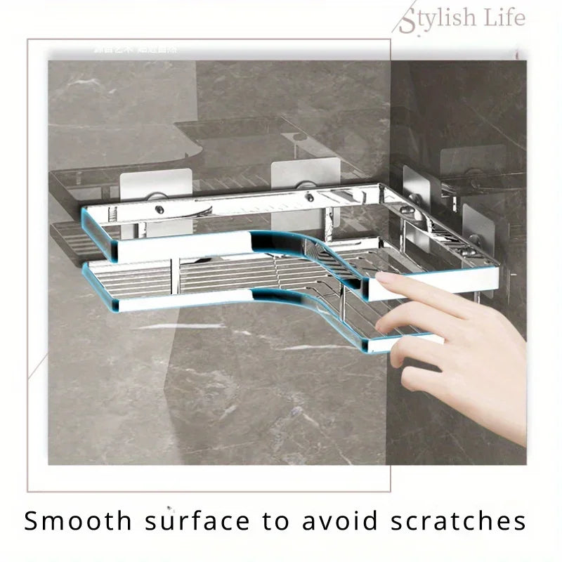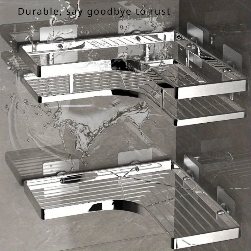 🚿 Stainless Steel Corner Shower Caddy – 2-Tier Adhesive Organizer